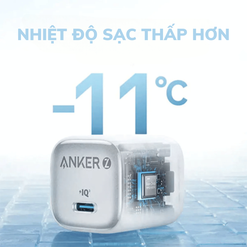 Khác xa so với tiêu chuẩn quốc tế sạc là 77°C, củ sạc nhanh Zolo của Anker thấp hơn so với tiêu chuẩn quốc tế 11°C nhờ được trang bị Ice Cooled Chip - tản nhiệt nhanh & mới nhất.